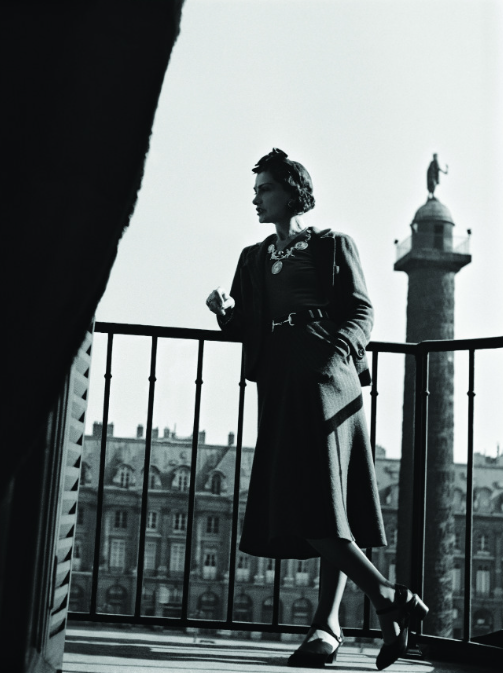1937年可可·香奈儿在丽兹酒店,可以看到后面的旺多姆柱(Colonne Vendôme)
