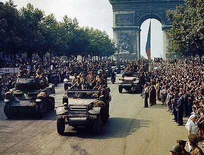 1944年8月25日,阳光穿透硝烟浓雾,洒在巴黎的街头上。盟军的坦克隆隆驶过,纳粹的旗帜在风中最后一次摇晃。巴黎解放了!