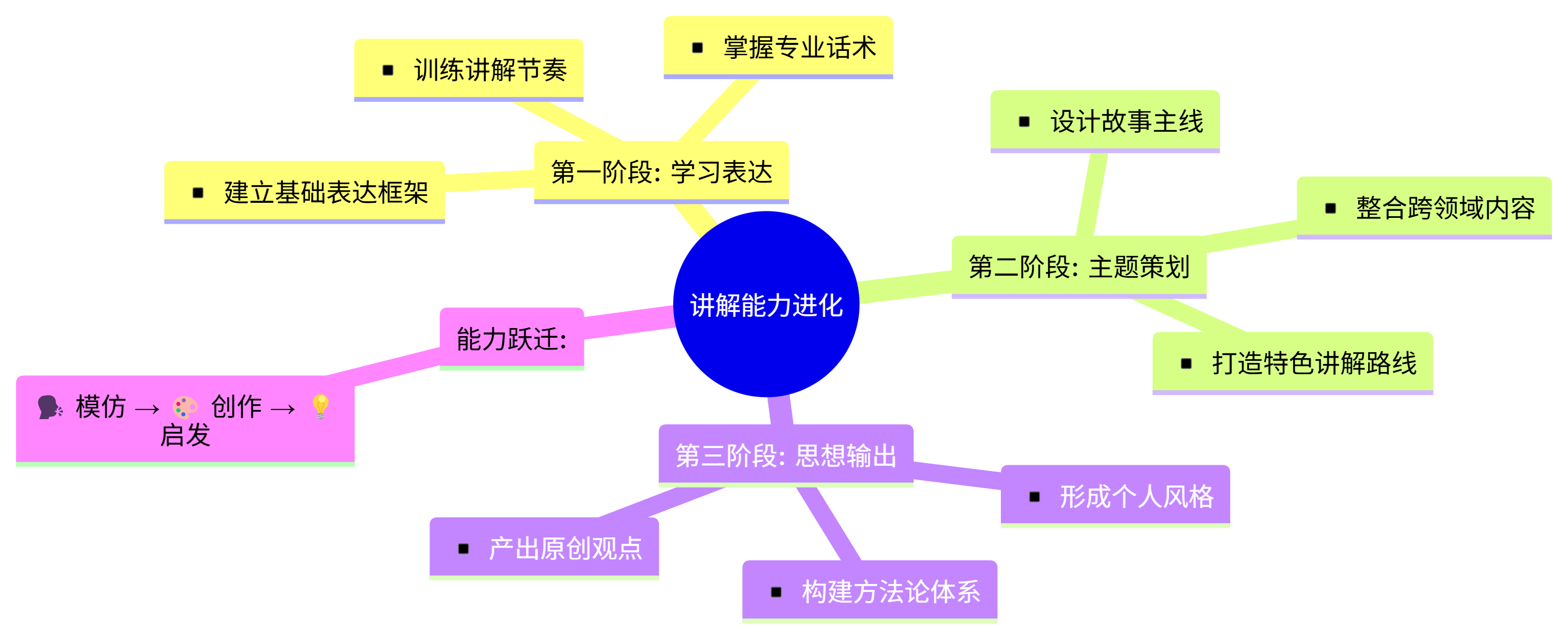 第一期学习话术,第二期设计主题,第三期构建个人方法论。